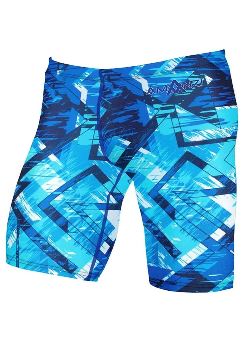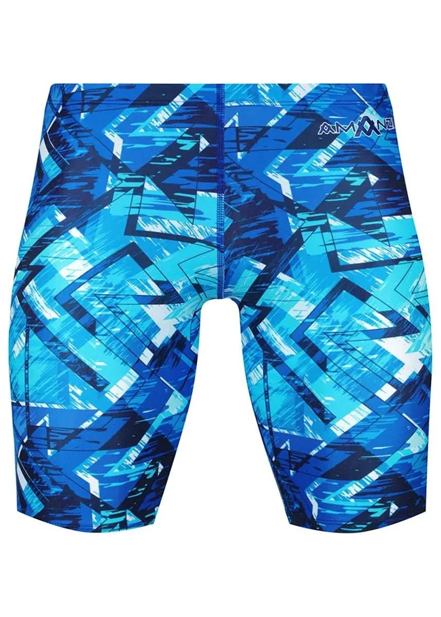 The Labyrinth Jammers are an entry level racing swimsuit that are also suitable for training. They have an elasticated waistband with a hidden, fully adjustable drawstring cord, to ensure they won’t fall down when diving or swimming. The jammers are constructed with two panels reducing the number of seams to an inner leg, crotch and backside.