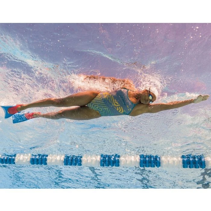 With their long, hydrodynamic blade, the Long Floating Fins add propulsion to butterfly and flutter kick. Buoyancy from the fins lifts legs to the surface, reducing drag from the rest of the body.