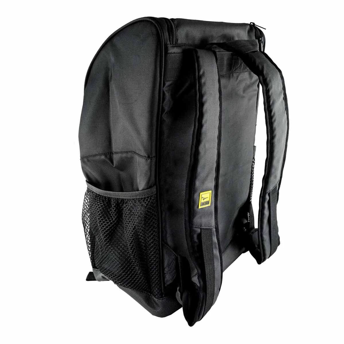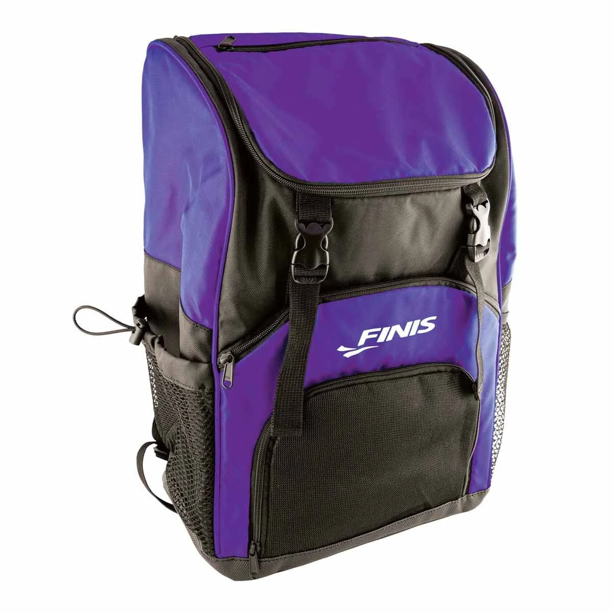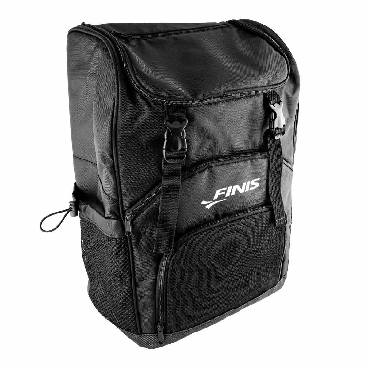The Team Backpack in black from FINIS is designed to provide swimmers with a sturdy and spacious backpack for everyday use. This bag includes a waterproof base and mesh compartment to keep your dry stuff dry and let your wet stuff air out. Use the adjustable mesh side pocket to store a water bottle or shampoo without fear of them slipping out.