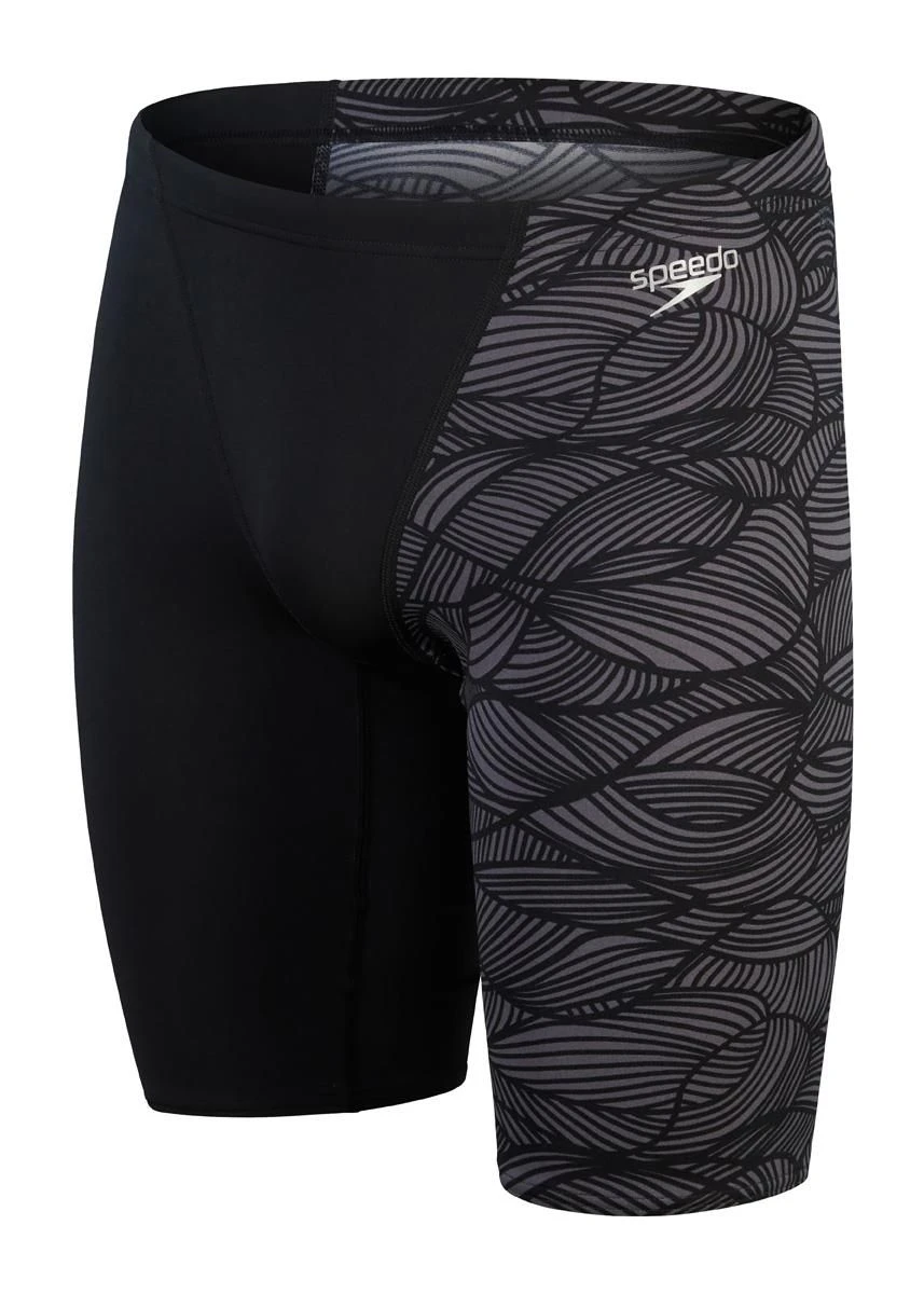 Get ready to train hard and look good in high-performance prints. Perfect for all sessions, this sleek looking asymmetric jammer features a sophisticated black and charcoal monochrome print. An engineered v-cut panel with integral support provides comfort and security so you can focus on your performance, while the drawstring waist ensures a great fit. Made to withstand daily swim sessions, Speedo ECO Endurance+ fabric is 100% chlorine resistant, quick-drying and made using 50% recycled materials.